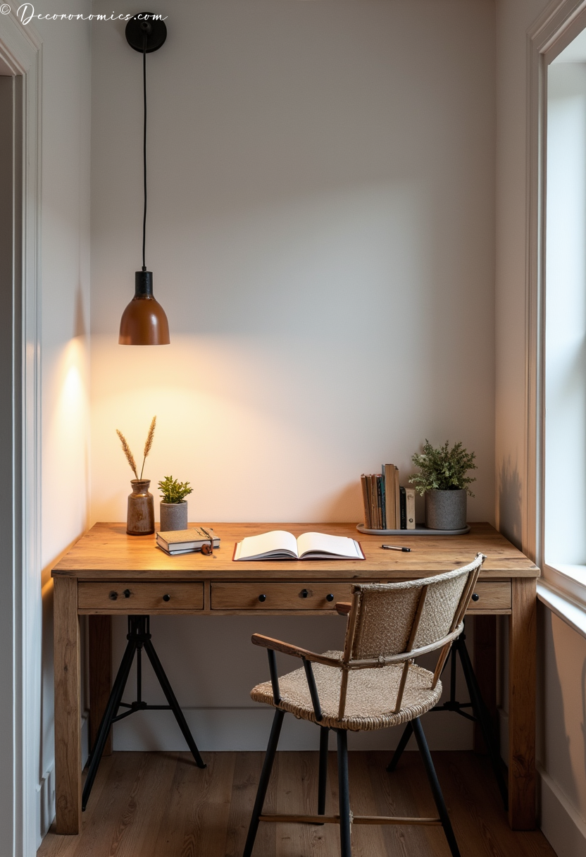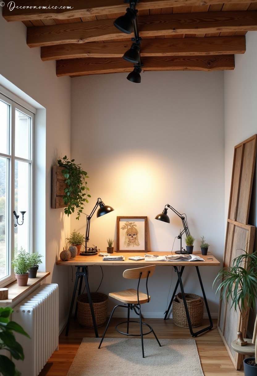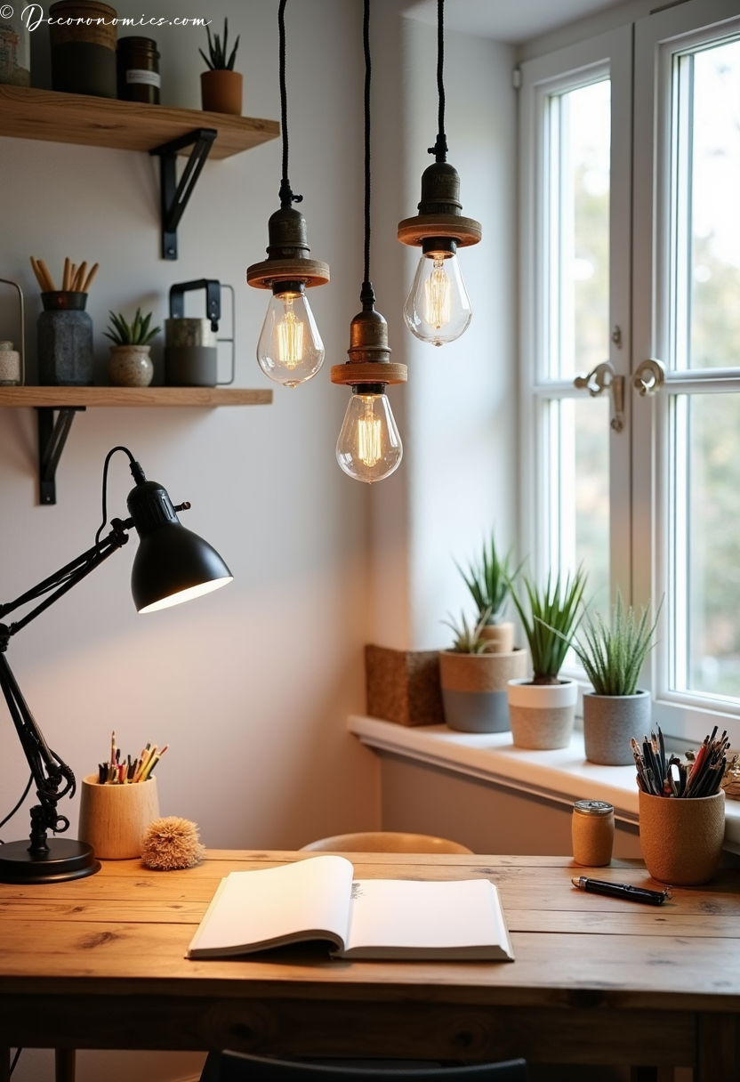 Offices, studios, and craft rooms need bright, focused lighting that reduces eye strain while maintaining rustic charm.