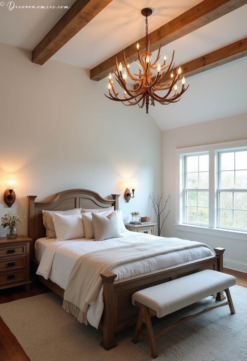 - Cabin + Coastal: Antler fixtures with driftwood accents