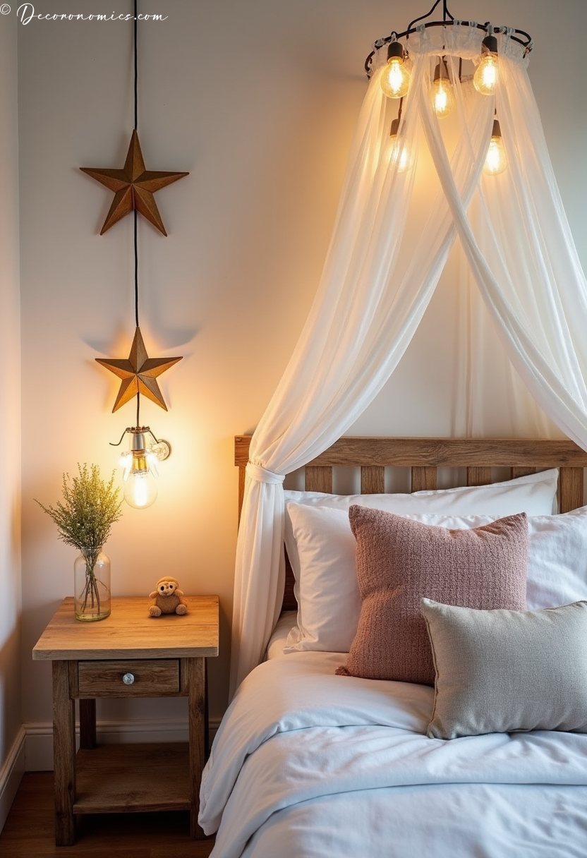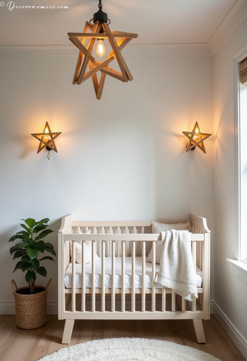 Bedroom antler chandelier Attic bedroom beam pendants Modern geometric teen pendant Whimsical star pendants Gentle nursery star pendant