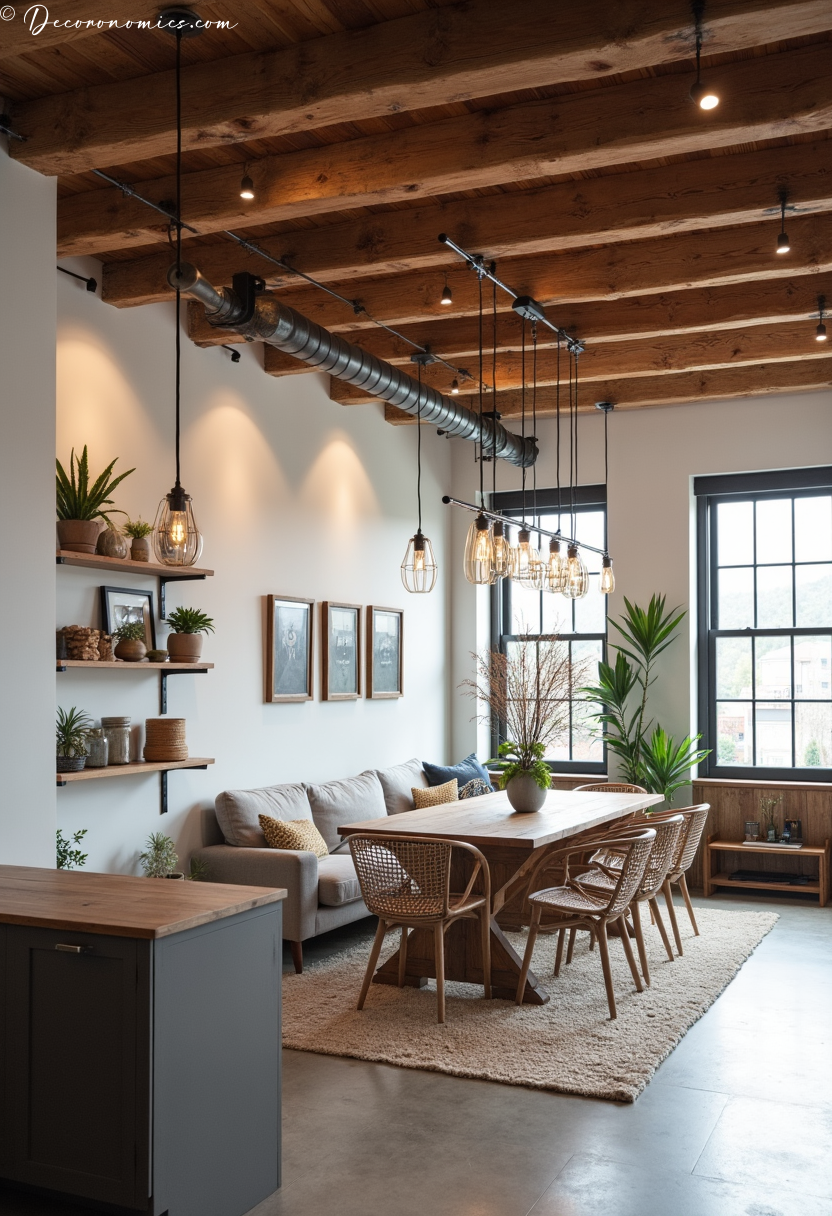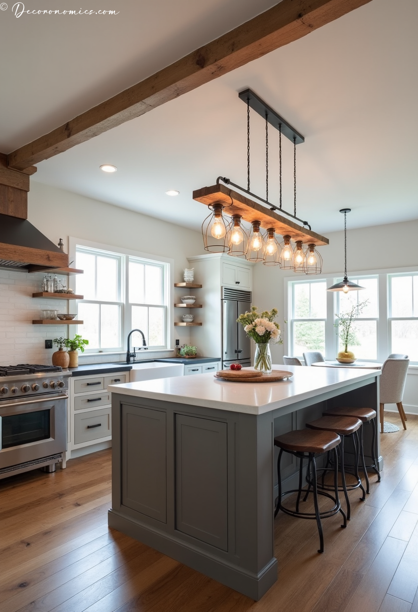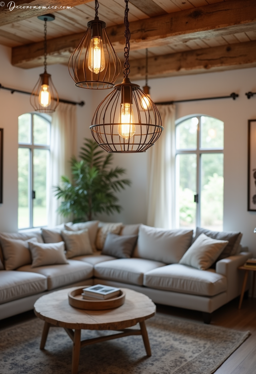 - DIY Projects: Make mason jar pendants, pipe fixtures, or wood beam chandeliers