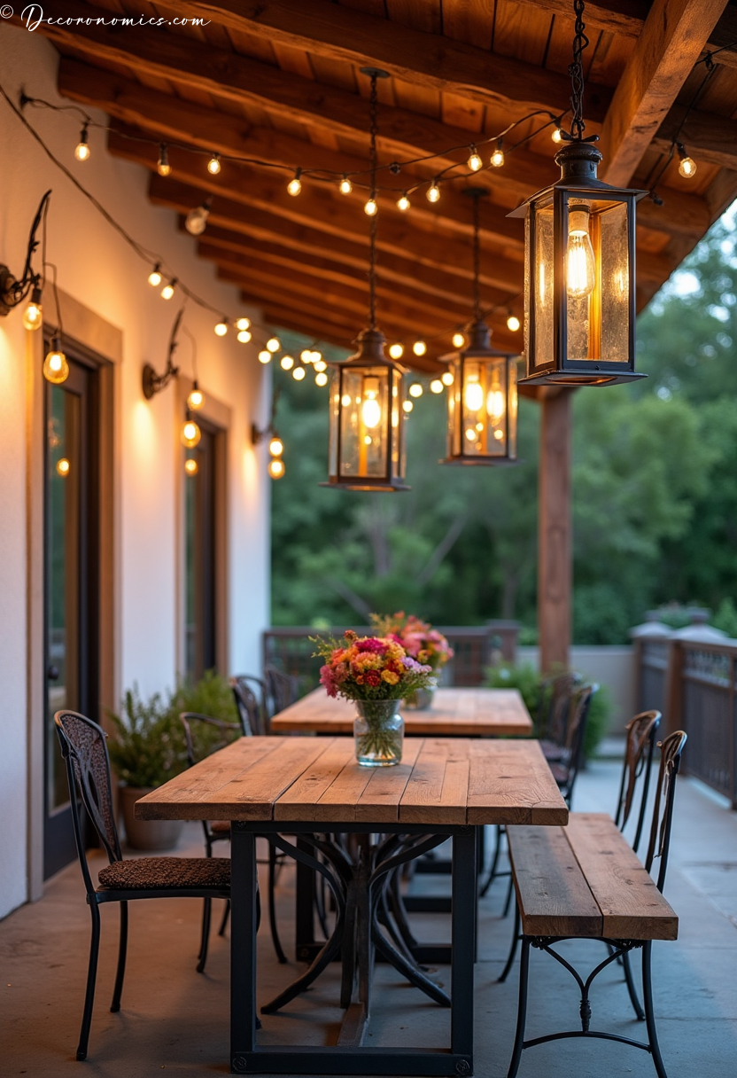 Extend your living space outdoors with weather-resistant rustic lighting that creates magical evening atmospheres.