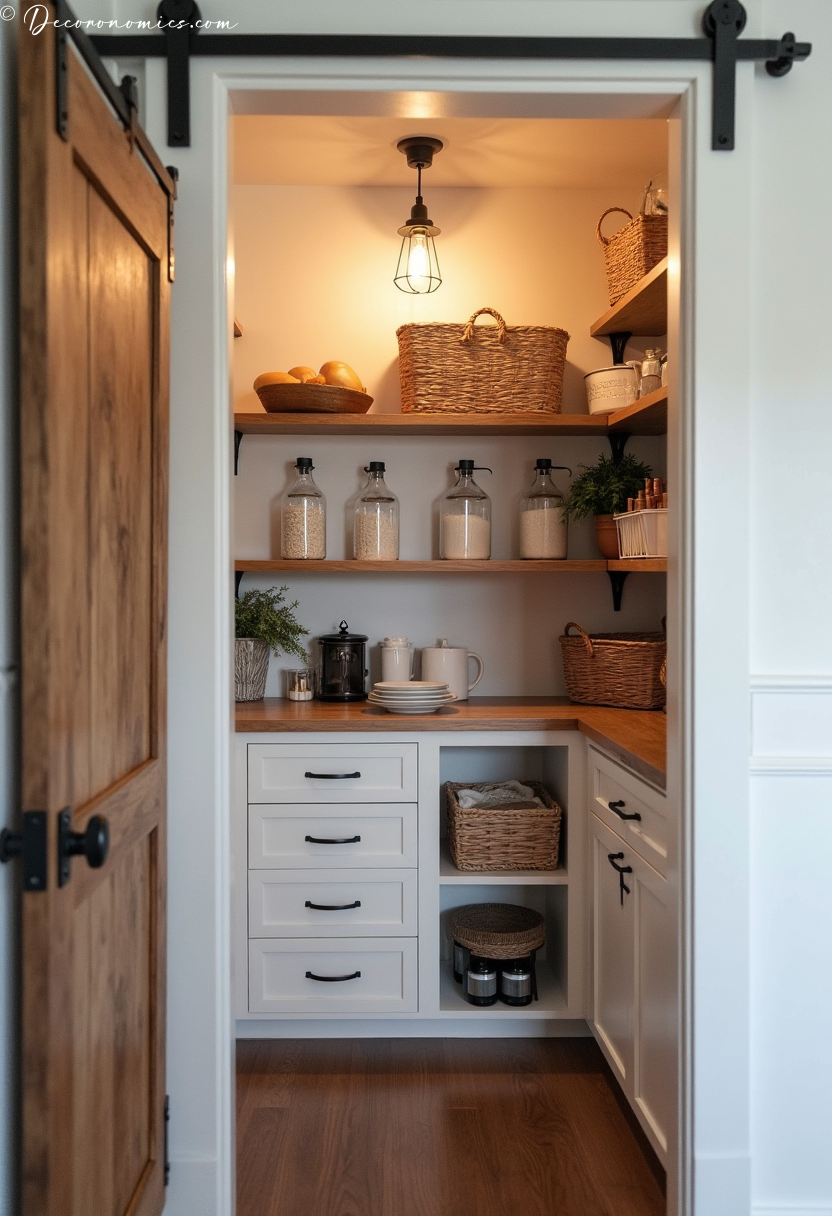 Breakfast nook pendant cluster Coffee bar jar light fixtures Pantry barn door track lights