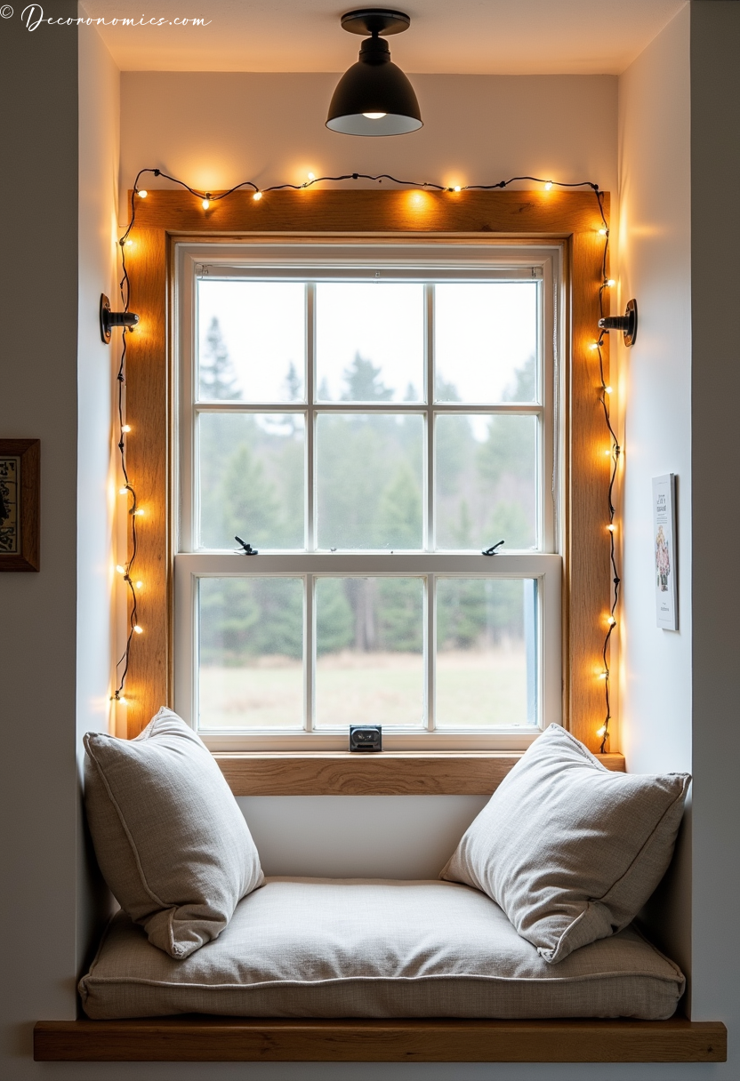 - Wood Beam: Reclaimed wood planks with hanging Edison bulbs